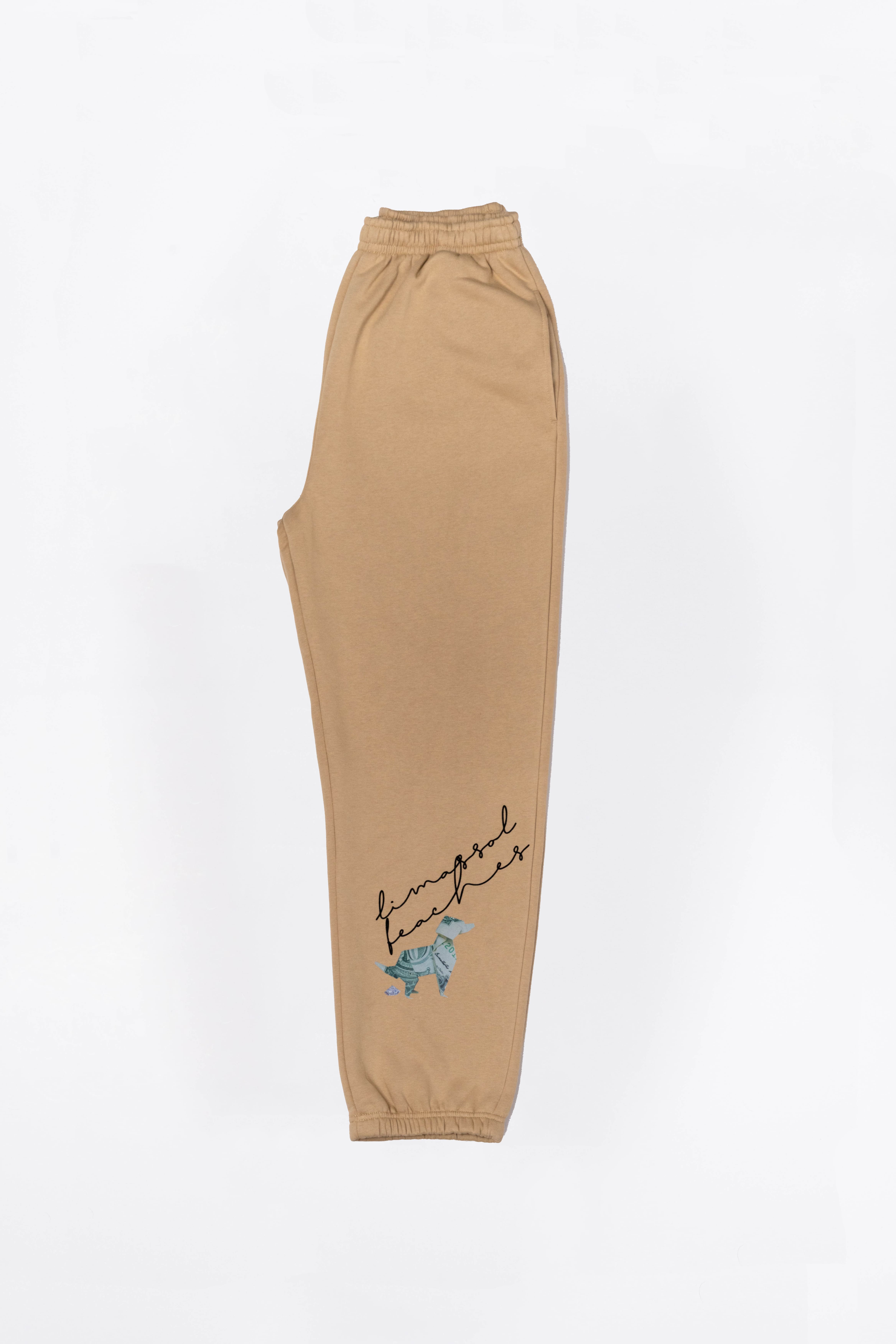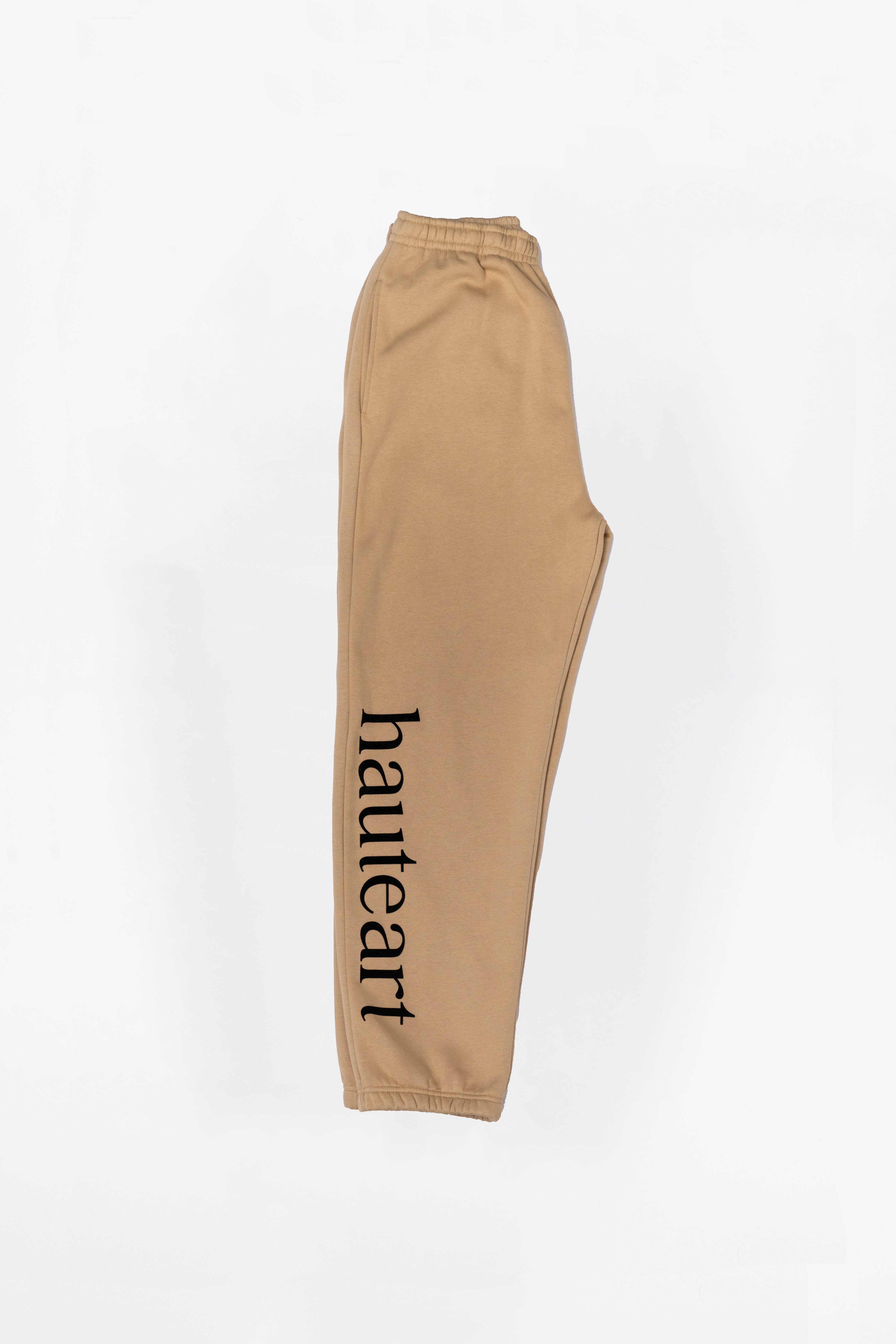 Beige HAUTEART tracksuit featuring the artwork “Diamond Poop” by Masha Bo. Сlean, sandy-tone palette meets a bold, humorous, instantly recognizable visual accent from the artist.